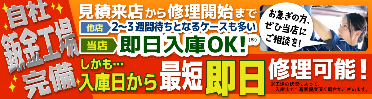 バンパー補修以外でも、通常当日のお引き渡しが可能です。