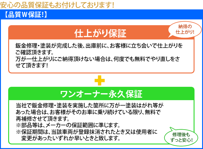 ※お車の色、修理する場所や損傷具合によって、追加料金を頂く場合がございます。(例:屋根等)